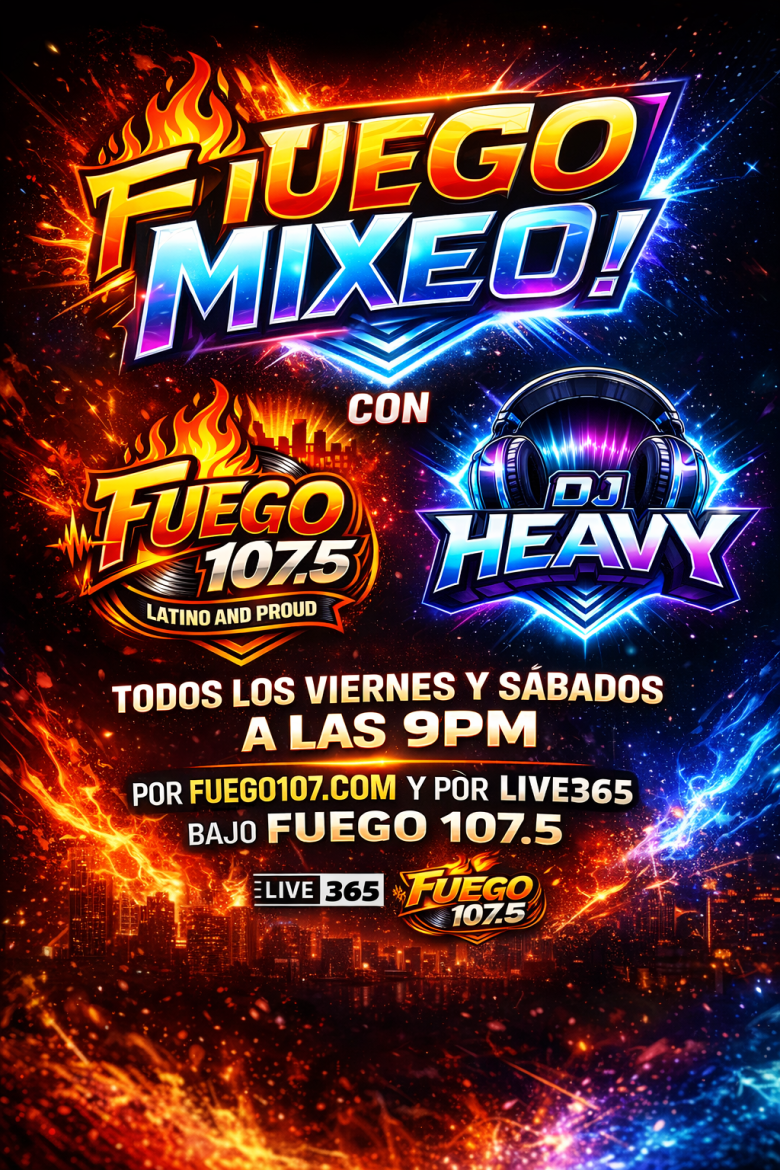 TUNE IN EVRY FRIDAY AND SATURDAY AT 9PM FUEGO MIX WITH DJ HEAVY DOWNLOAD THE LIVE 365 APP
